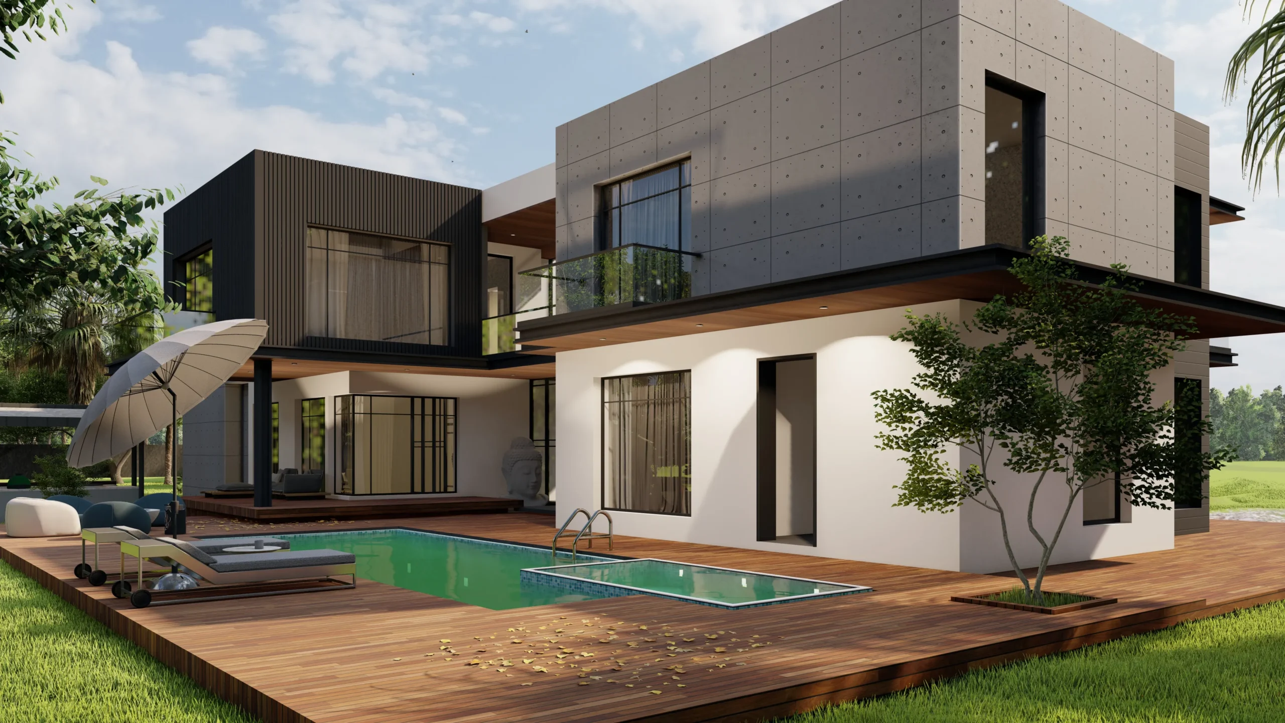 This project highlights the comprehensive execution of an expansive Tropical Modern farmhouse, deeply rooted in crafting a seamless resort-like homeThe core objective was blending sleek design with the lush natural environment, connecting indoor and outdoor living areas effortlessly. The main design challenge was achieving a vast, layered aesthetic while visually unifying components like exposed concrete and glass walls.