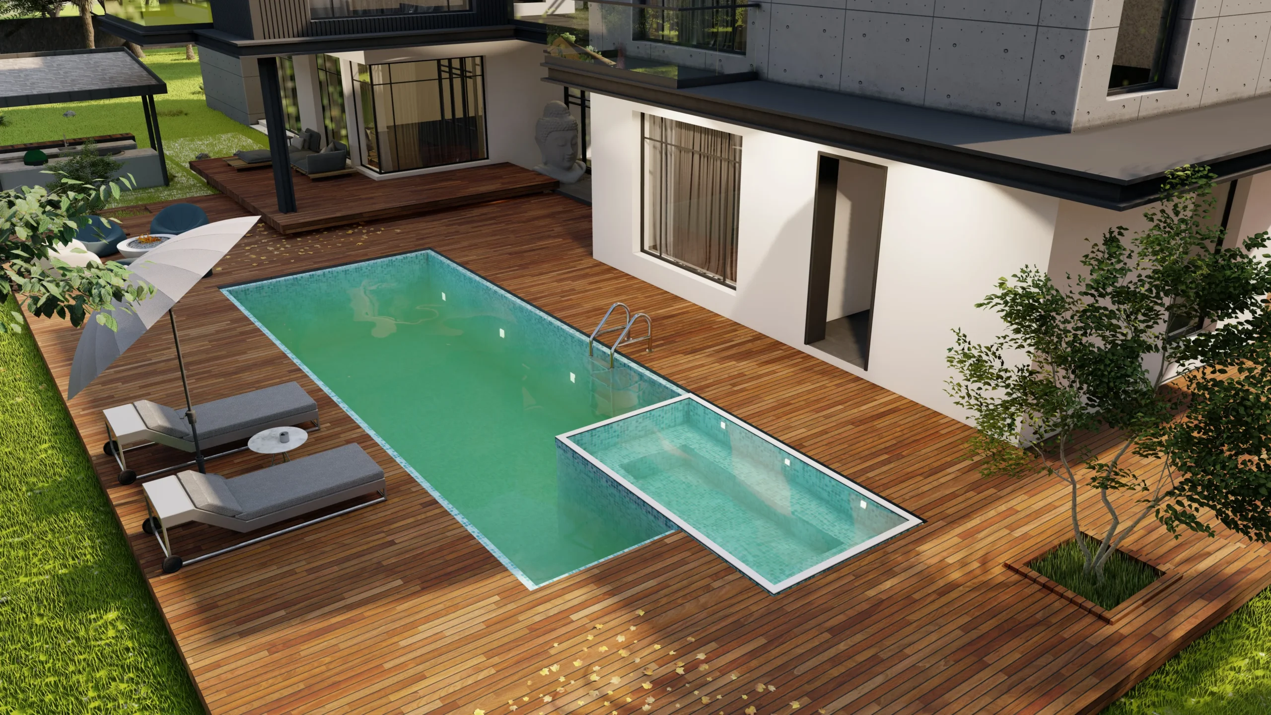 This was resolved using massive wooden eaves and flat roofs dramatically framing the structure. The final result is a stunning, open-plan residence showcasing integrated landscaping, a large timber pool deck, and sophisticated, private luxury.