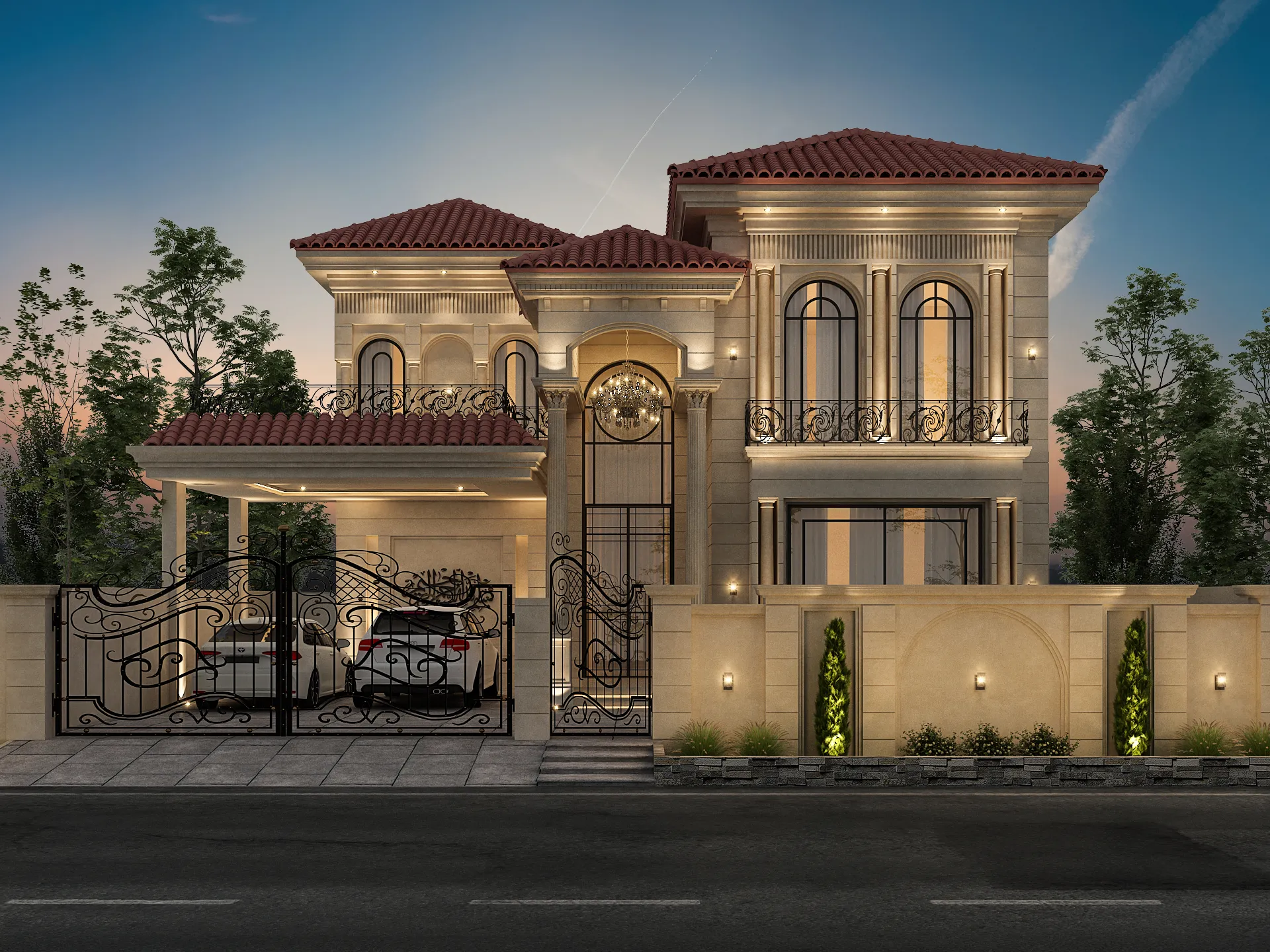 This project highlights the comprehensive execution of a magnificent Mediterranean residence, deeply rooted in crafting timeless elegance and commanding curb appeal.The core objective was seamlessly establishing classical proportions and rich architectural detailing reminiscent of grand European villas. The main design challenge was meticulously integrating ornate elements like wrought iron, elaborate cornices, and arched windows cohesively.